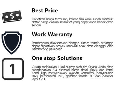 "Penyedia jasa baik dan sabar, juga mengerti berbagai alternatif bahan bangunan. Kemarin baru renovasi rumah untuk dijadikan tempat usaha dengan budget minim. Alhamdulillah sudah selesai dengan kualitas bagus dan rapi. Penyedia jasa juga bertanggung jawab membuang sisa-sisa bangunan. Semoga berkah usahanya!"